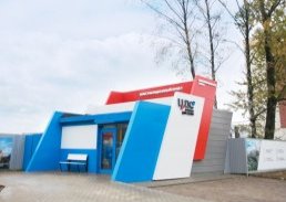 Консультационные пункты оформляются в фирменном стиле компании. Так, по проекту одна стена строения выполняется полностью из стекла, что обеспечивает максимум естественного света и позволяет посетителям понаблюдать за ходом работ на стройплощадке. Внутри для клиентов обустроена комфортная зона ожидания, для посетителей с детьми предусмотрен игровой уголок.