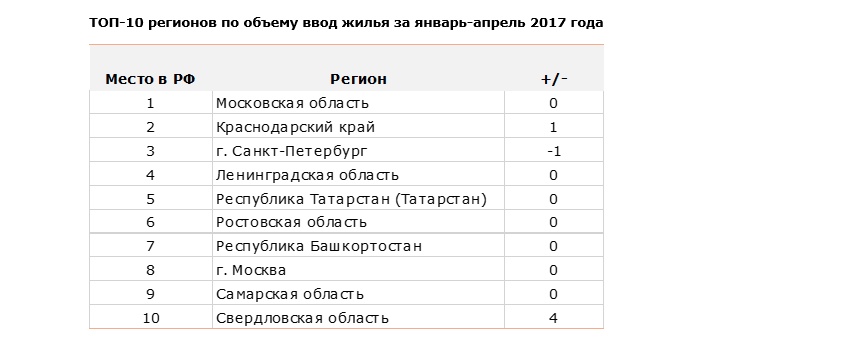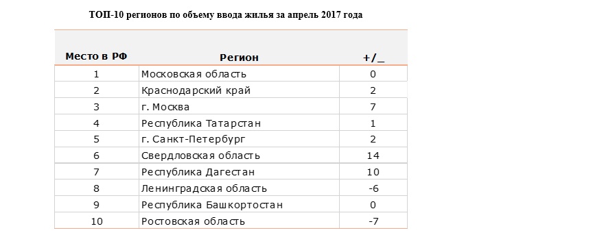 Эксперты совершили подсчеты «квадратов» введенного жилья и установили, что Подмосковье оказалось лидером рейтинга, заняв первую строчку списка. Отмечается, что столица России смогла занять лишь 8-ю позицию. На почетном втором месте — Краснодарский край, сместивший на строку ниже северную столицу — Санкт-Петербург.