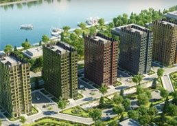 В рамках проекта, разработанного известным бюро архитекторов Speech, ведется строительство пяти корпусов высотой в 15 этажей. В монолитных зданиях предусмотрен вентилируемый фасад. Площадь апартаментов составляет от 36,4 до 75 кв. м. Тем, кто предпочитает традиционные жилые помещения, предлагаются квартиры-студии площадью 29 кв. м. Из панорамных окон большинства апартаментов открываются прекрасные виды на набережную.