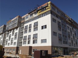 В настоящее время в корпусах под номерами 5, 6 и 12 завершается монтаж современных отопительных систем и сетей водоснабжения. Рабочие приступили к обустройству вентилируемых фасадов. Внутри здания производится отделка общественных мест.