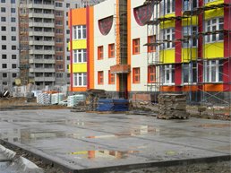 В настоящее время в детском саду завершены комплексные монолитные работы. Здание уже подключено к электросети. Строители заканчивают монтаж фасада. Параллельно благоустраивается прилегающий участок.