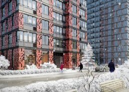 В комплексе представлены компактные апартаменты-студии площадью 28,8 кв. м, а также более просторное жилье площадью от 36 до 75 кв. м. Всего в рамках проекта будет возведено пять монолитных корпусов с 15-этажными секциями. Концепцию новостройки разработали специалисты известного бюро Speech.